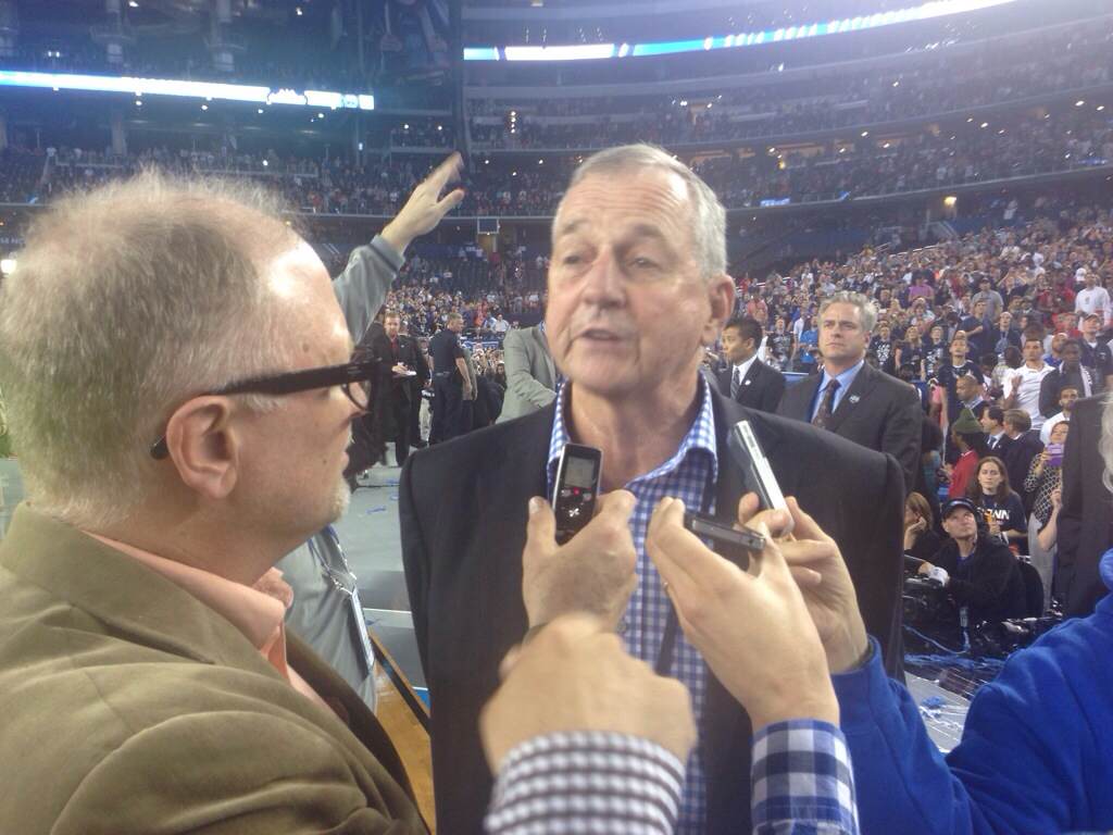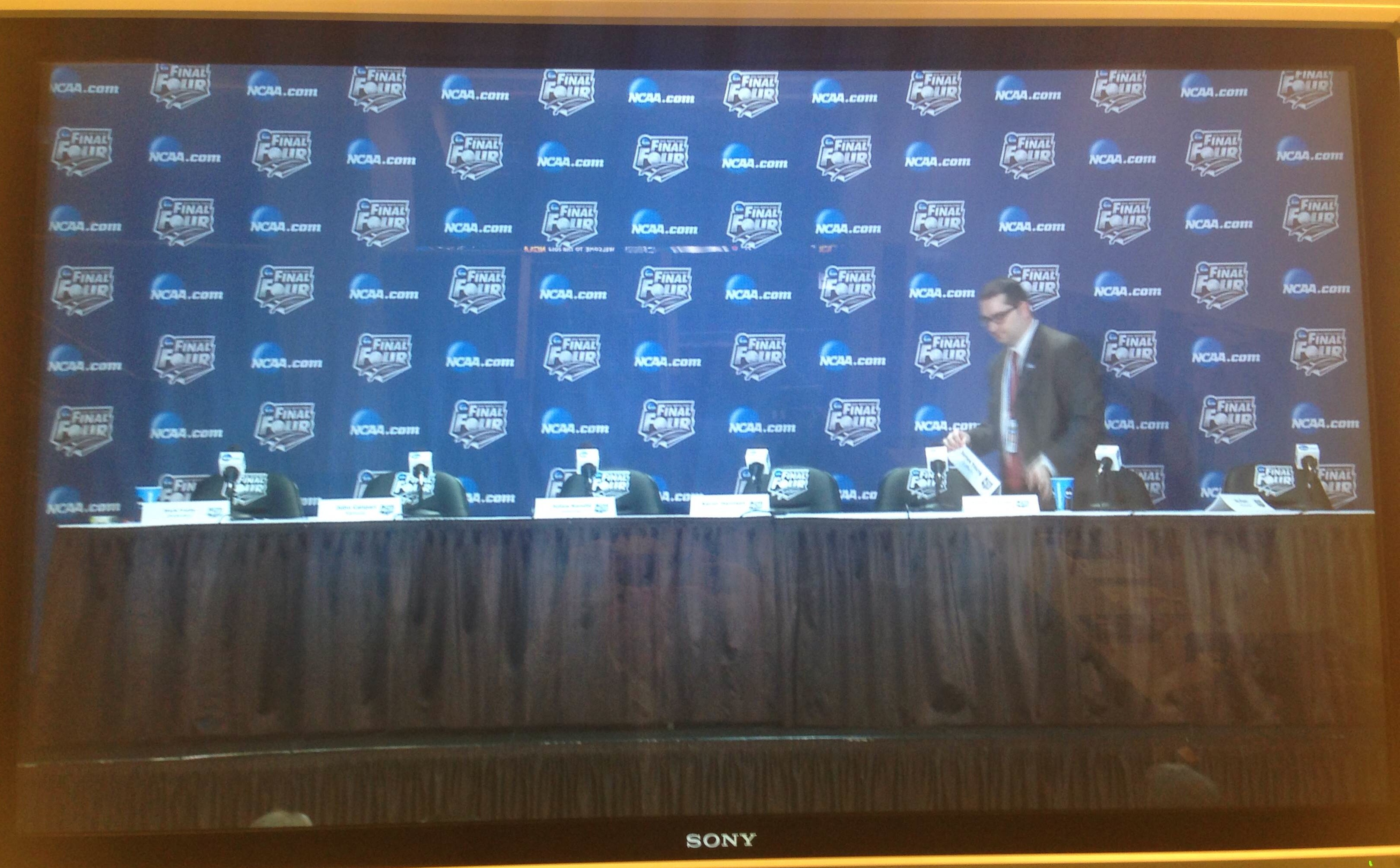 It’s Media Day. My plan is to surf the press availabilities at the stadium in Arlington for a few hours and then go back into Dallas to meet up with Ken Pomeroy on his way out of town. After speaking to a room full of coaches on Thursday, Ken’s leaving town on the Friday of Final Four weekend. (“I didn’t realize there were games connected to this thing.”)
